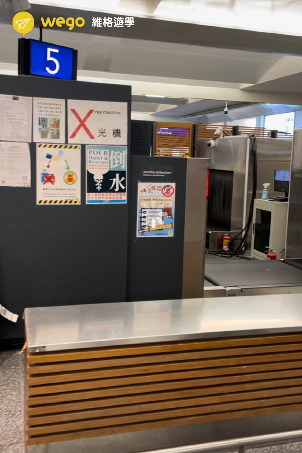 當托運行李後請帶著您的旅遊證件(登機證及隨身行李護照等等)務必跟著行李確認經過X光機沒問題後再離開,如果行李過X光機有問題會被拖出來,同學要處理完才能離開呦!