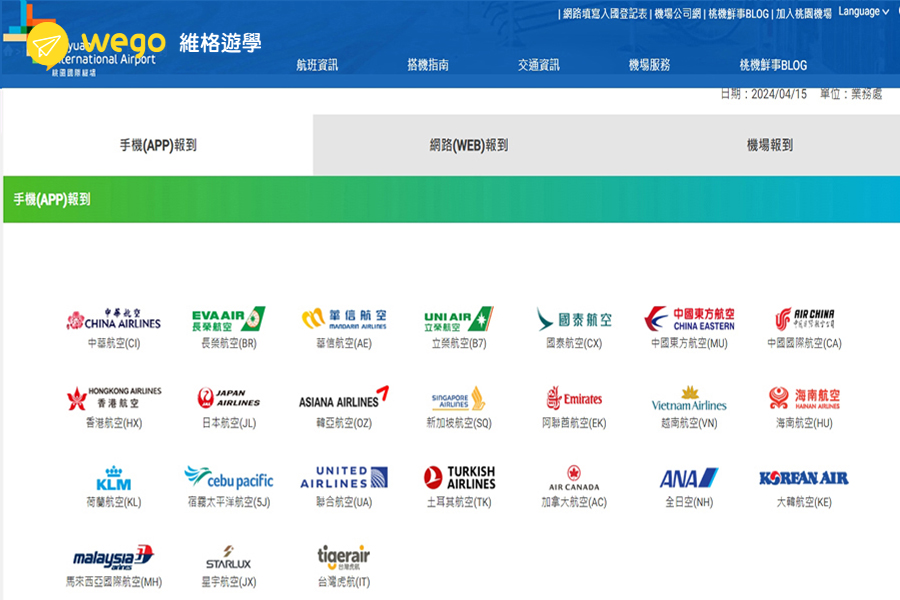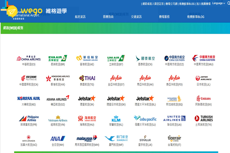 以下是桃園機場開放網路報到的航空公司