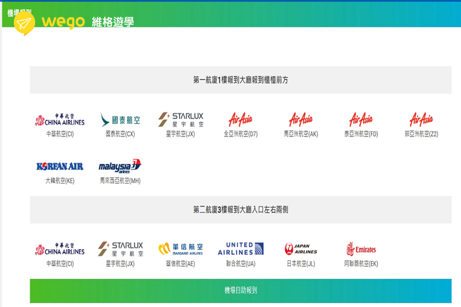 以下是桃園機場有開放機場自助報到的航空公司: