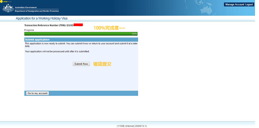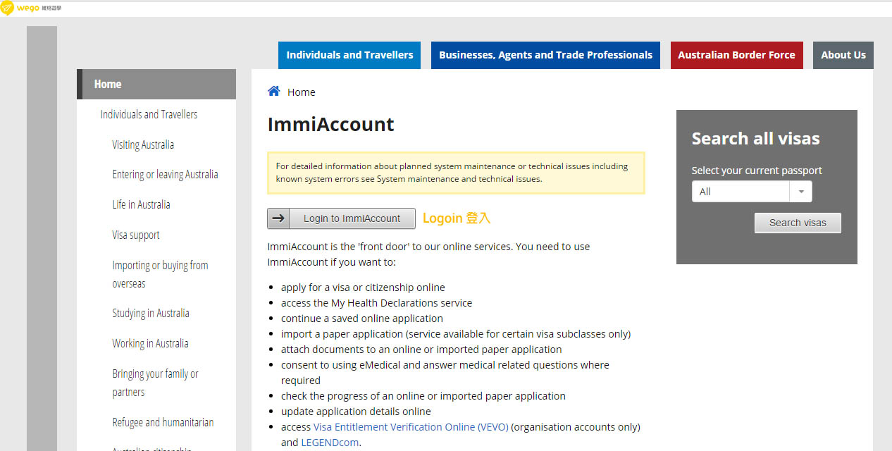 查詢自己目前簽證進度(登入使用稍早申請的IMMI帳號、密碼)