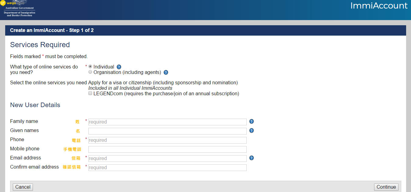 - 建立移民局帳號&密碼(IMMI) 點此連結移民局官網