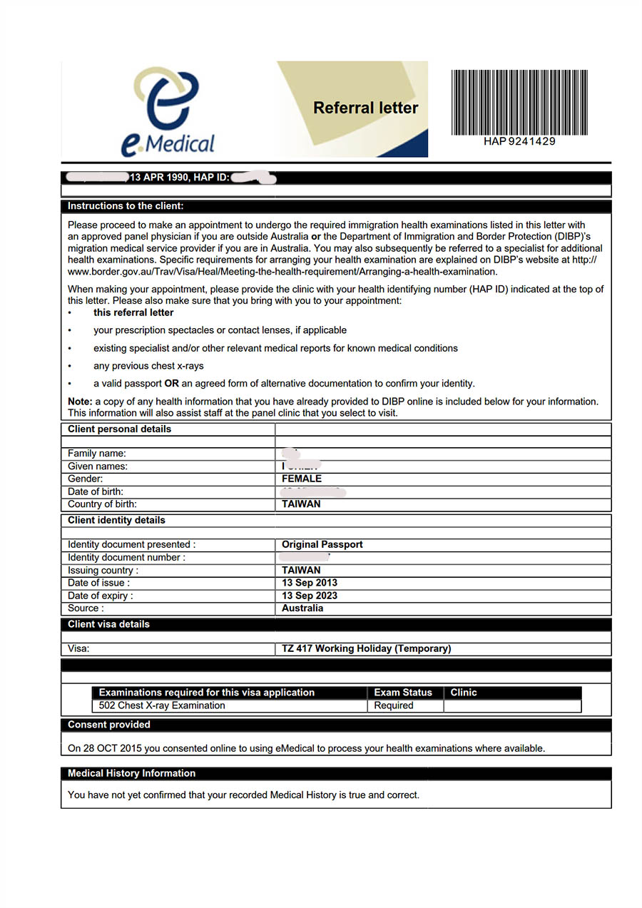 一切順暢Fefe又辦理了一位學生的澳洲打工渡假簽證,但這位學生稱M,M付了簽證費、體檢完畢過了10天左右收到澳洲移民局信件有檢驗出胸黑點,也就是疑是肺結核。一問之下才知道學生曾經有得過肺結核,後續的話不停的去醫院複檢、吃藥控制持續7個月左右醫院這邊確認健康良好,跟醫院申請英文版醫師診斷證明以及X光片附件上傳到自己的移民局帳號 。 期間打了好幾次過去澳洲移民局講一些Fefe聽不懂的話,這段快10個月真的花費了我很大的心力,但畢竟是免費幫忙學員、大概又等待了快一個月有一天終於收到核准信 。真的是很幸運沒有再重新花一次簽證費又能實現澳洲打工渡假夢想。
