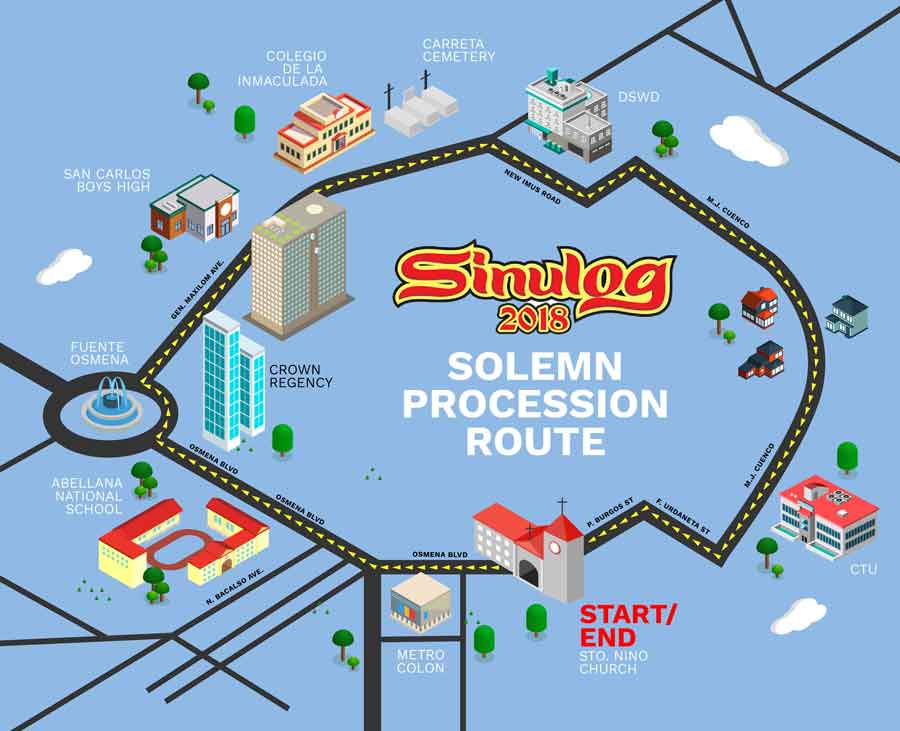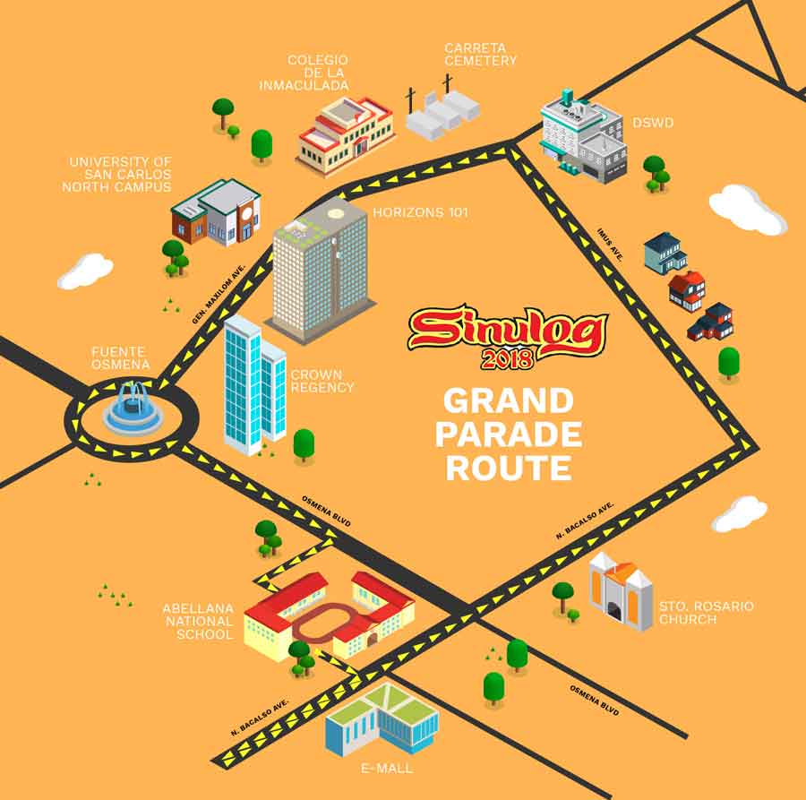 Cebu Sinulog Grand Parade將於上午9點開始。從Imus路到Maxiusm AveFuenteOsmeñaCircle,OsmeñaBlvd,最後在宿務市體育中心為遊行路線。