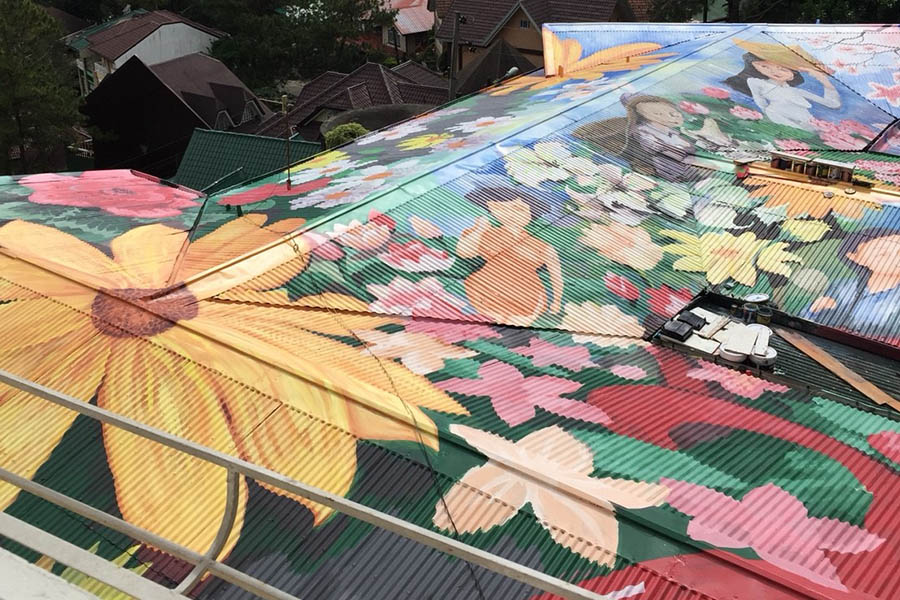 此校區內有多處交誼空間,讓學生可以自由談天做英語交流,讓學生除了一般上課課程之外,也有非常大的機會在校區的日常生活中交到不同國籍的女生朋友。屋頂用越南最著名繪圖而成如圖: