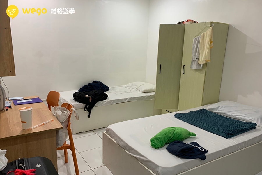 剛開始我住的是四人房,有獨立衛浴,每個人也都有自己的床、書桌和衣櫃,空間寬敞舒適,住起來很自在。後來我搬到兩人房,就相對狹小擁擠很多,以CP值來說我會大推四人房。