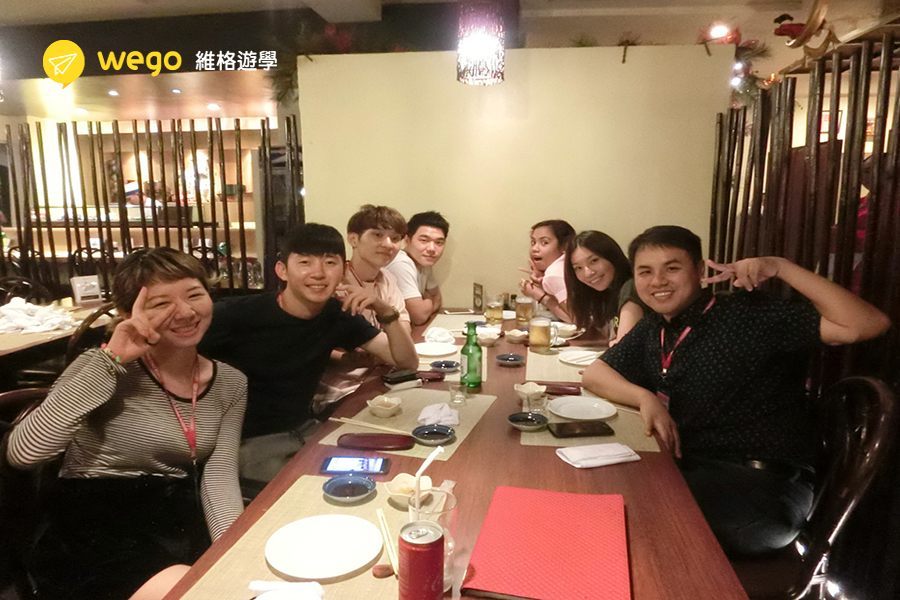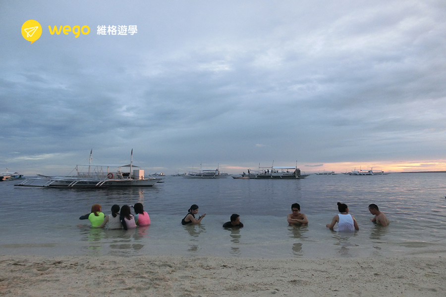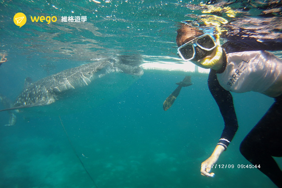 平日在學校認真上課外,假日跟不同國籍的同學一起跳島旅行。宿霧的小島真的很多,每次去跳島都要非常早就出門,因為要先搭車到碼頭,再搭船到小島,搭車搭船的時間真的很長,還好我不是一個會暈車暈船的人,有些同學還沒到島上就已經累癱了;但到了島上但看到那一片清澈的海水與美景,真的再累都覺得值得。我到校的第一周,就和同學一起去了Malapascua兩天一夜旅行,也許是我第一次去的島,所以覺得它是我去過最美的小島。海水很透徹乾淨,小島上的餐廳東西很好吃又很便宜,其實我們在小島上沒有什麼行程,黃昏時大家就在海邊一起泡在水裡聊天,享受美景,非常的愜意。大家都說去宿霧一定要去看鯨鯊,所以當然我也去了,這也是一個滿有趣的體驗,最深刻的是,工作人員會幫我們分組,大概3-4個人一組,會有1個工作人員在海水裡面照顧我們,我們就扶的木筏,當鯨鯊游過來時,工作人員就會先跟你打個暗號讓你有心理準備,表示你要下到水裡了,然後就會把你的頭壓到海水裡,由水裡面的另一名工作人員幫你和鯨鯊拍照。現在想起來都覺得好笑,原來大家都是這樣跟鯨鯊拍照的嗎??哈哈