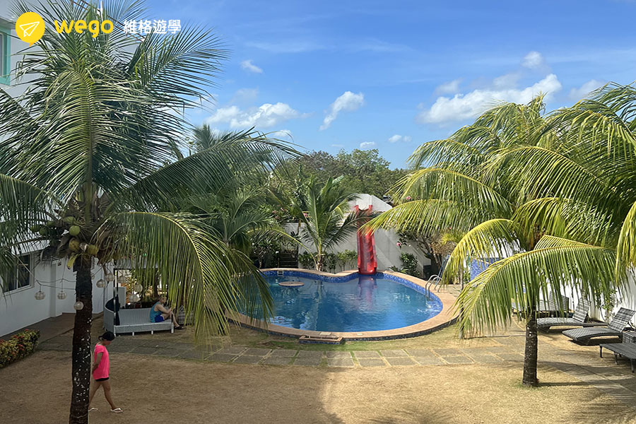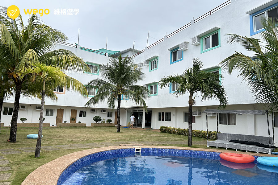 學校提供家庭房型與完善設施,讓家長與孩子在安心的環境中學習,校內就有泳池可以讓小朋友放電玩耍,每週還會有泳池泡泡趴!除此之外,由於長灘島是著名觀光勝地有很多各國遊客,島上治安也相對安全。