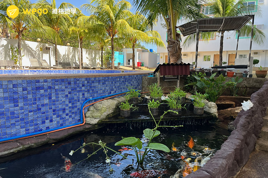 泳池旁還有庭園造景跟可愛動物區~小朋友的最愛~