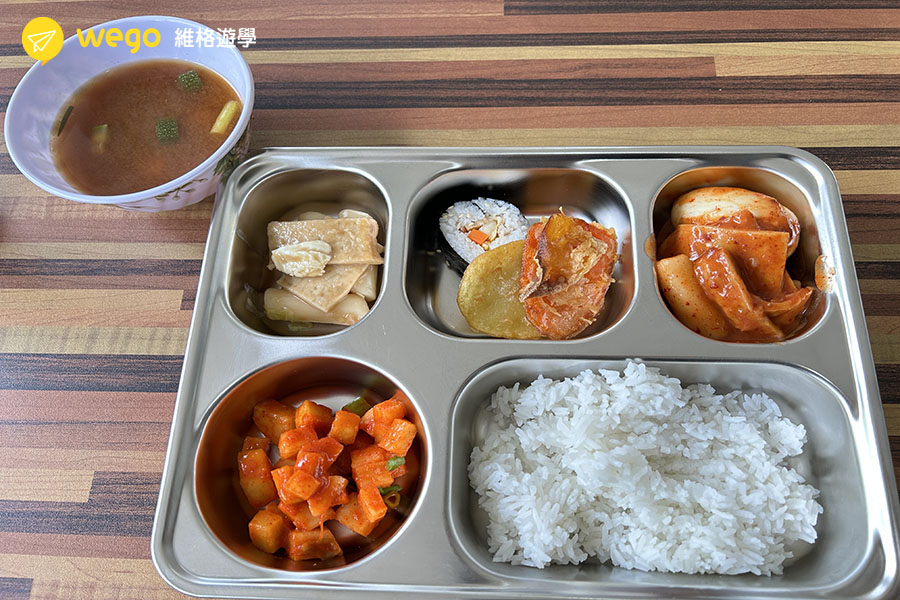 學校提供平日三餐、週末假日一餐早午餐,餐點採自助形式。