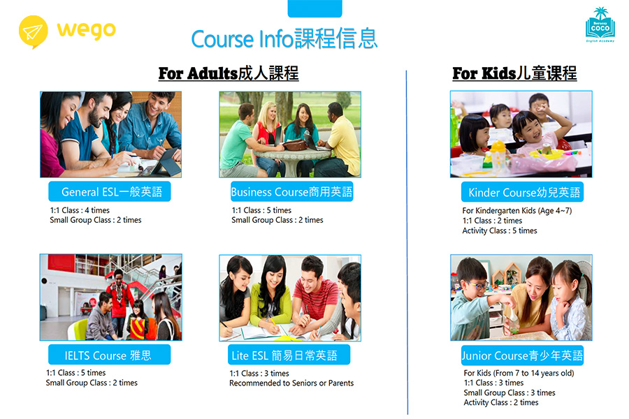 學校提供多元化課程,適合不同年齡與需求的學員: