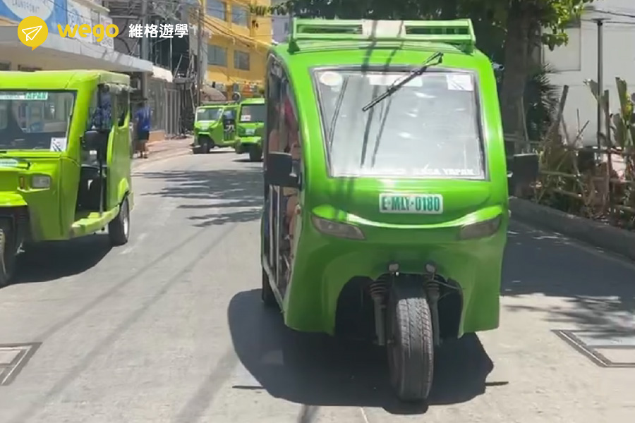 可搭乘當地三輪車(Tricycle)或是學校也有免費接駁車載你到鬧區商場喔!