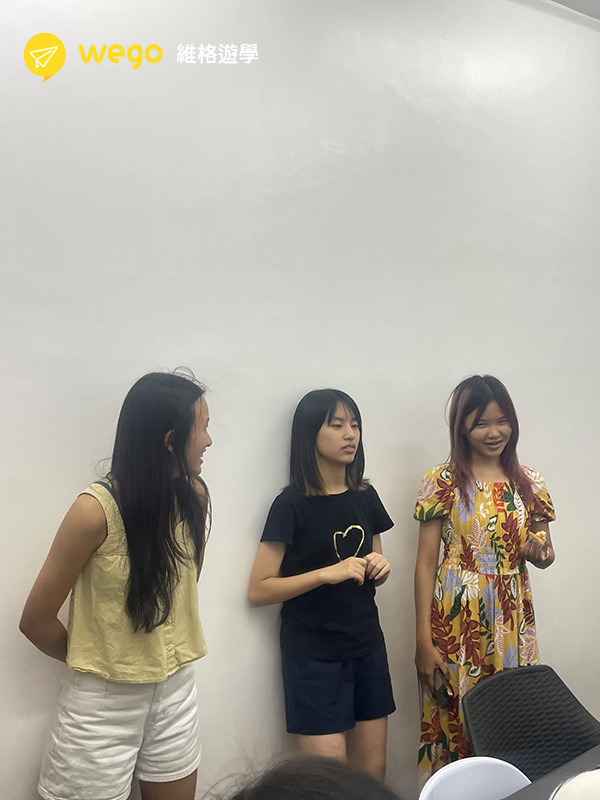 至於團體課嘛…有分為生活會話和文法,生活會話最一開始是有用學校提供的教材在上課,但在第一堂課過後我們發現教材實在是非常簡單,上課一直有點傻眼的看著對方偷笑,老師應該有感受到對於我們來說一點挑戰性都沒有,於是那張紙就在也沒有出現過了?。之後上課都比較像是有個主題,像是technology、environment。我們每人就要輪流說出自己對於此主題的看法,有時候也會玩遊戲,抽紙條念上面的題目,也有時候老師也會跟我們討論今天想要怎麼上課,但是到後來跟老師變得太熟了有時候free talk一整節,也是很不錯啦!