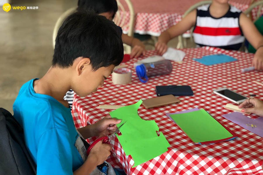 或者在大圓桌上做屬於自己的手工藝術品,每個學生再透過互相幫忙,做出自己最滿意的作品,全程也是使用英文唷~