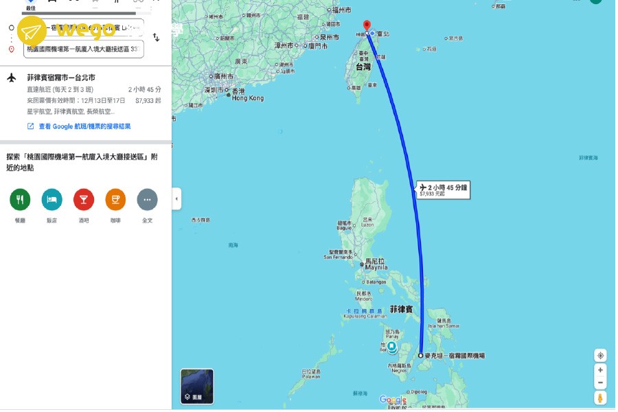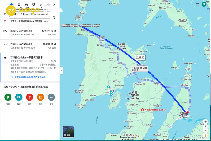 - 從卡提克蘭機場飛往宿霧馬克坦機場,約1小時。