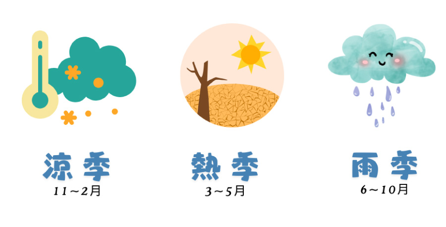 雨季(6月~11月):雨水豐沛,適合喜歡涼爽天氣的你