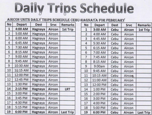 | Cebu North Bus Station to Bantayan Town – Departs: | Bantayan Town to Cebu North Bus Station – Departs: |