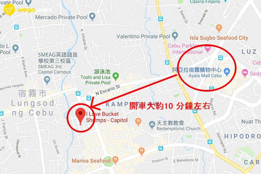 ▲宿霧市區手耙桶蝦餐廳地圖