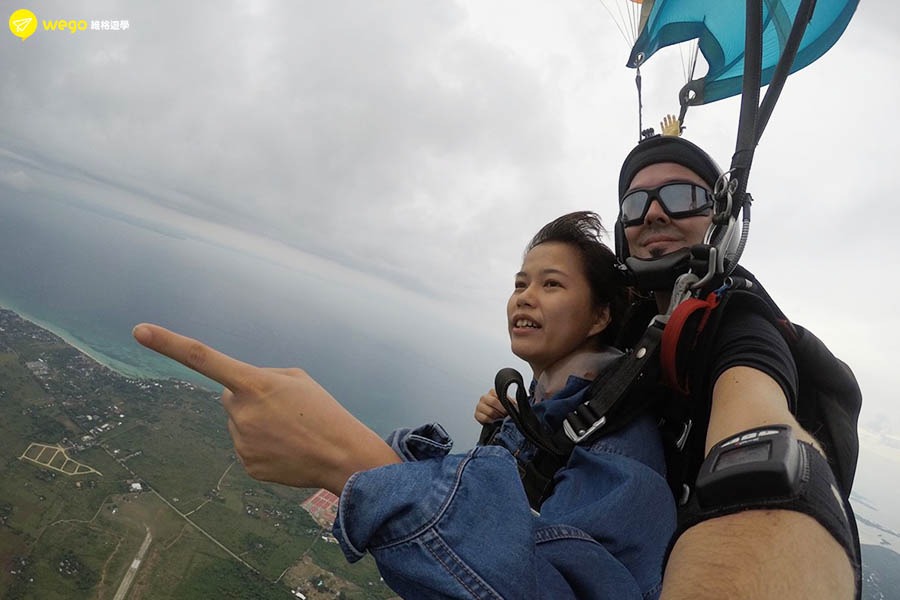 其實是在跳傘的時候都是全程英文溝通唷,所以趁機會考驗自己到底聽不聽得懂美國人說什麼~跳傘同時訓練膽量加上英文能力 !!
