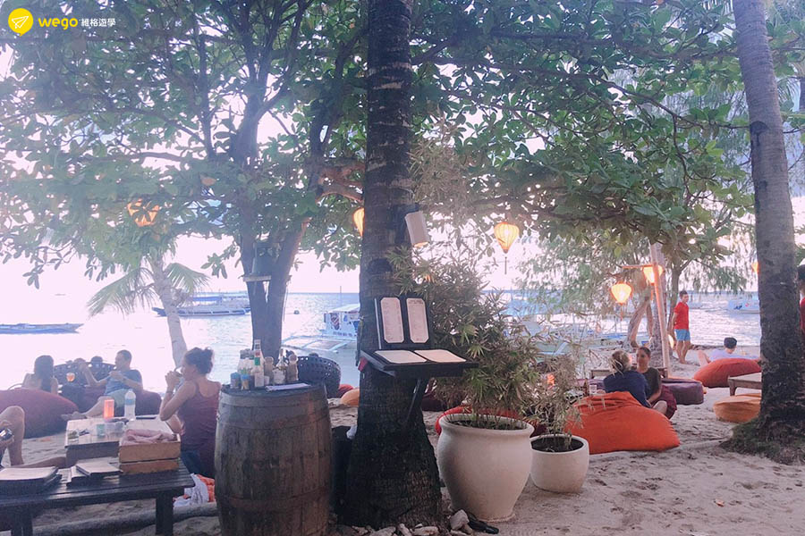 看地圖就可以知道渡假村就在沙灘上,周圍其實佈滿了潛店跟度假村~但想去的同學們一定要記得提早預訂唷!因為Ocean vida很容易客滿,在這渡假村一樣有餐廳以及戶外酒吧,早上出發潛水下午回來躺在懶人骨上看夕陽真的太棒了~