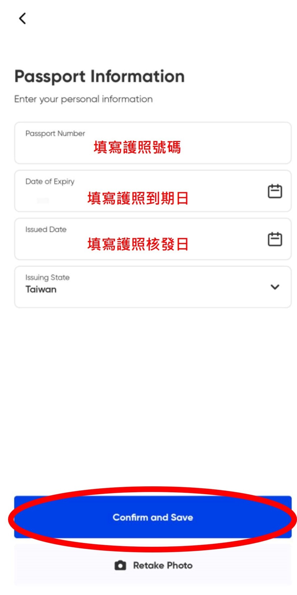 8. 掃描你的護照,掃描完後接著填寫護照號碼、護照到期日及護照到核發日。