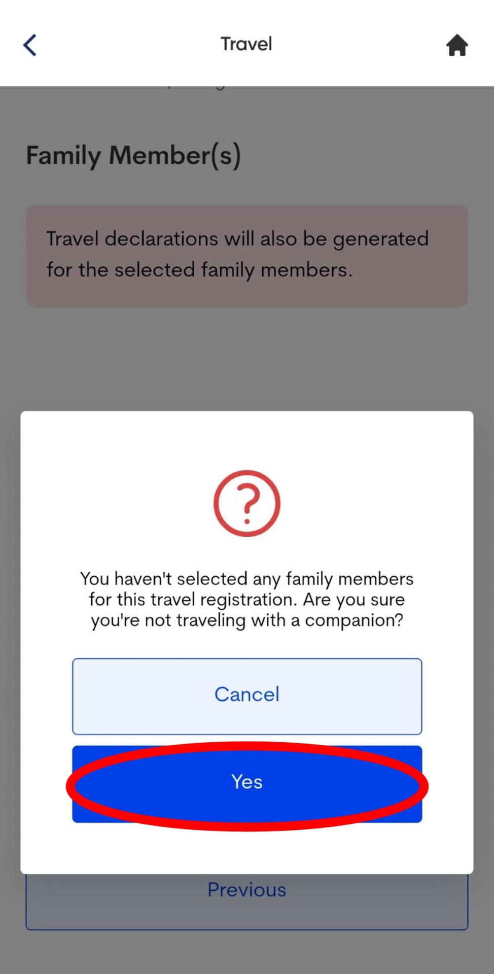 - 如果與家庭成員一同入境的話,只要在步驟16的地方選擇〝Add Family Member〞,選下一步。選擇〝YES〞加入家庭成員。並填寫家庭成員資料,不須再另外申請新的e-Travel。