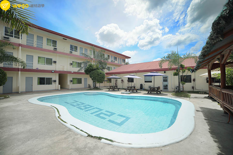 CG有二個校區位於宿霧,Banilad校區位於繁華的市區,屬於中小型校園環境,有泳池供小朋友下課後游泳,若不喜歡每天被關在學校,平日沒課時候也能外出體驗,學區附近有眾多語言學校,安心指數高,附近許多咖啡廳、異國料理餐廳按摩店以及學校,CG學校伙食超過20道自助式料理,屬於一間CP值頗高語言學校適合親子共讀。
