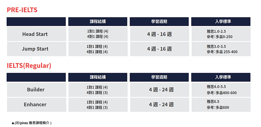 Pines雅思課程有預備班及正規班
