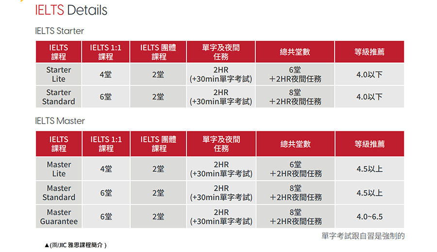 JIC雅思課程分為IELTS Starter 、IELTS Master