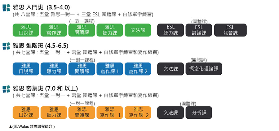 Wales雅思課程分為入門班、進階班、密集班