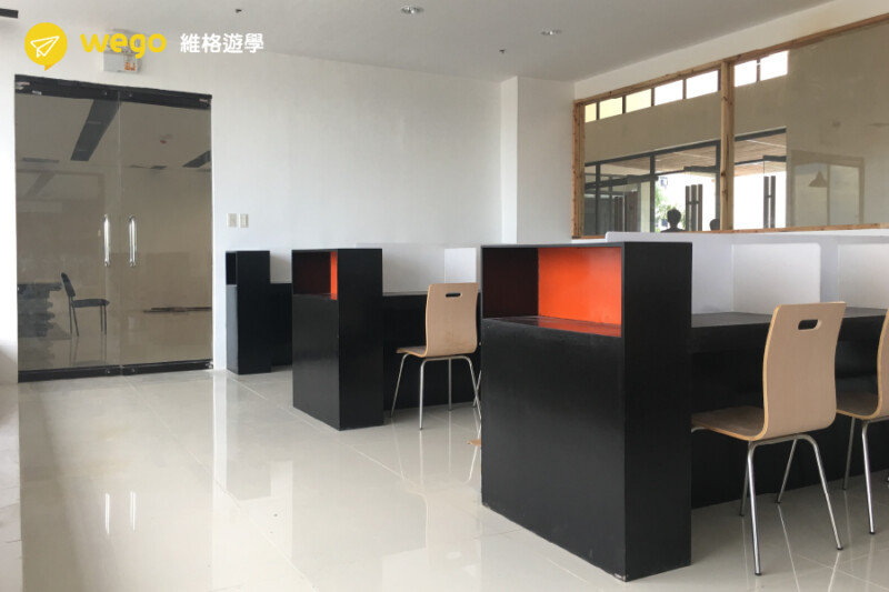 EV教學大樓的一樓擁有EV最強大的辦公室,他們每個行政部門窗口都分得很細,讓學生有問題時能夠及時的找到可以協助得窗口。當然除了當地員工外我們還有最強的EV台灣經理Una,這位經理可是擁有7年的菲律賓工作經驗,真的遇到任何狀況都難不倒她!教學大樓內也有English Only Policy的政策,學生只能說英文,讓學生有一個全英文的交流環境喔。
