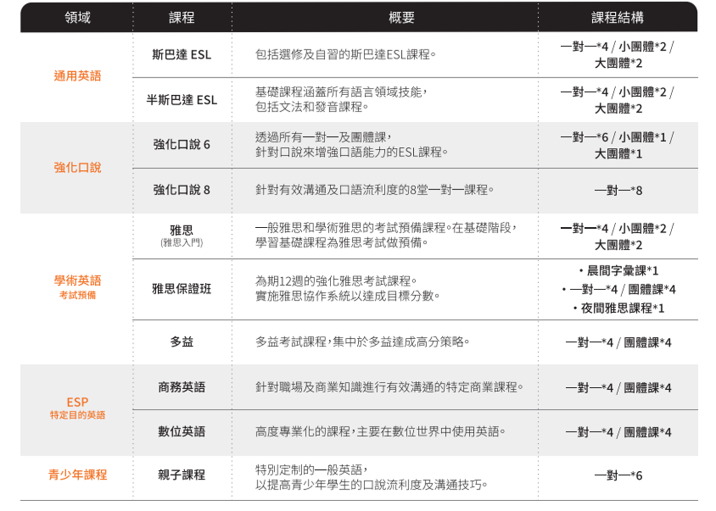 斯巴達-平日不能外出,非常嚴格,早上有單字課,下午有句型課,晚上還需要強制自習。(雅思課程為強制斯巴達課程)