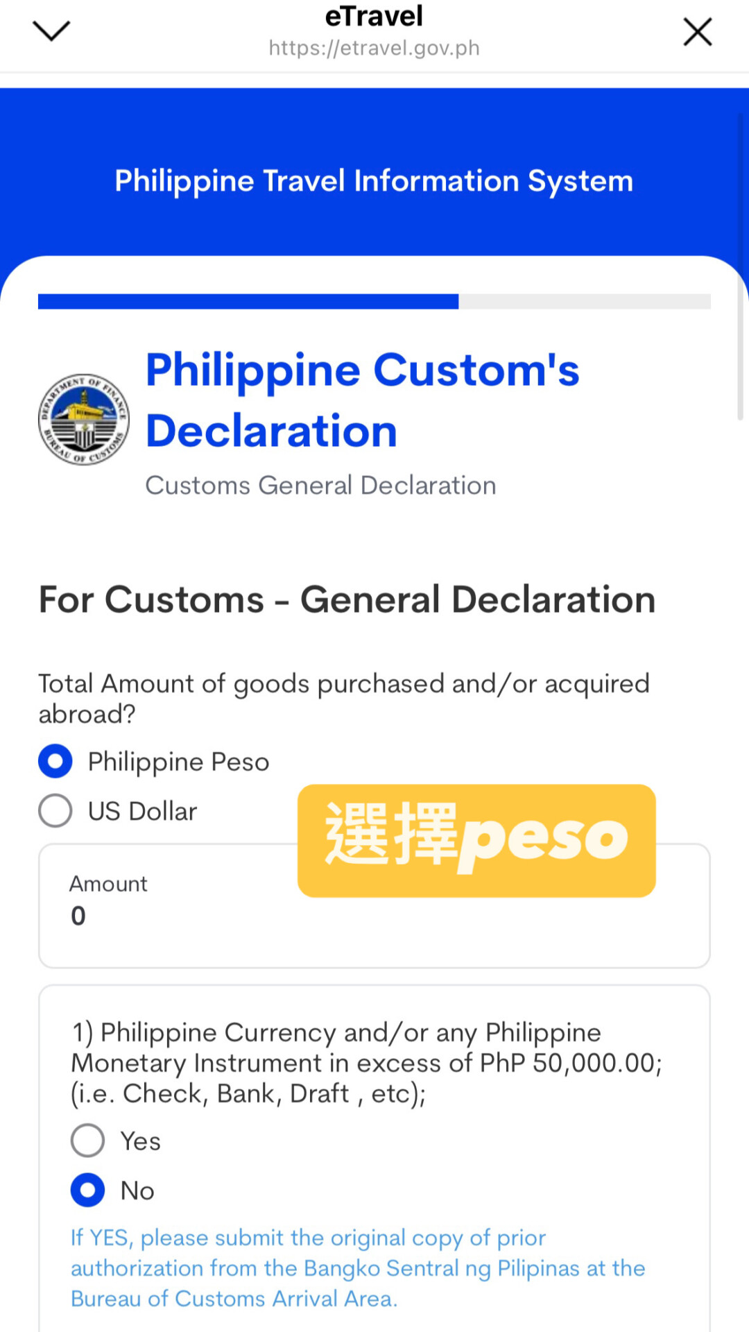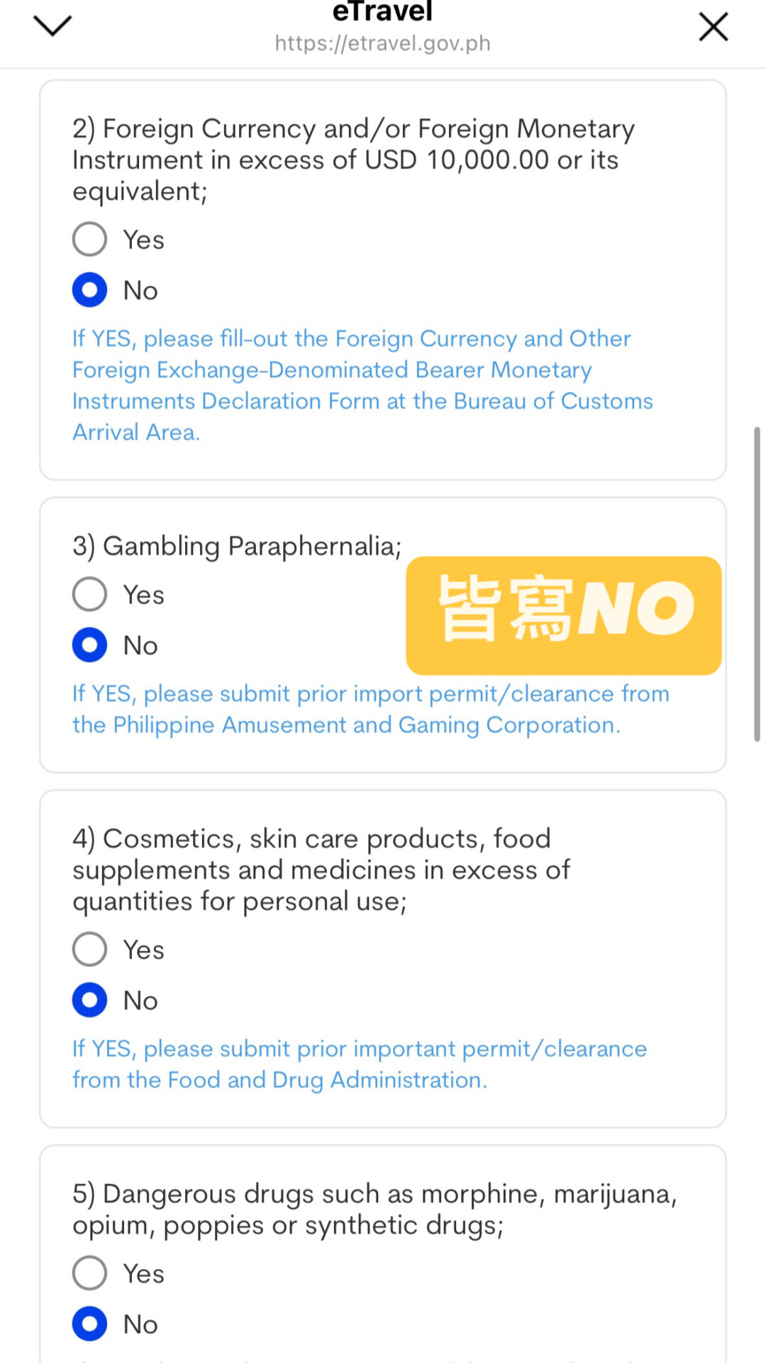 | 菲律賓海關申報表 | 與eTravel 一併申請 |