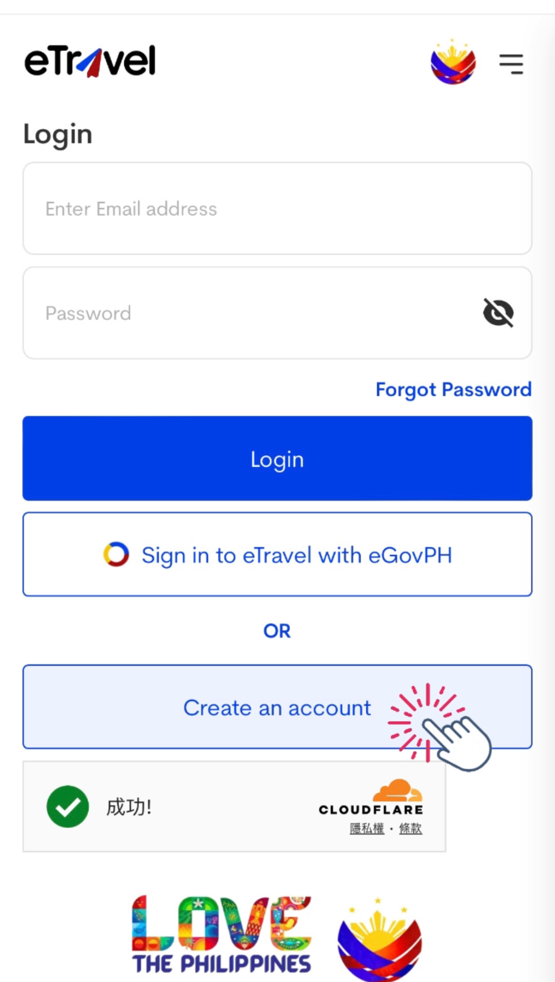 2.點選”Create an account”創建eTravel帳號