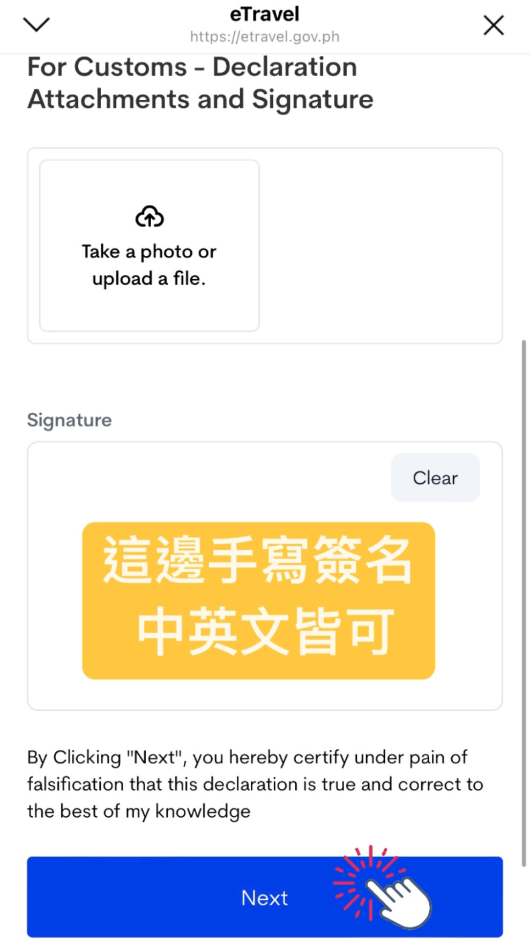 27.同行者簽名後,按”Next”進行下一步驟