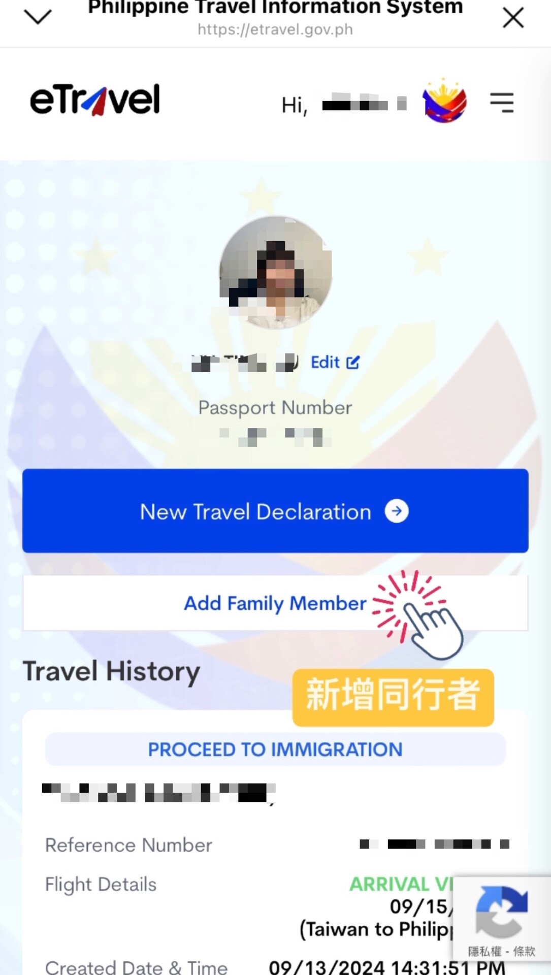 20.創建同行者資料: 回到首頁,點選Add Family Member