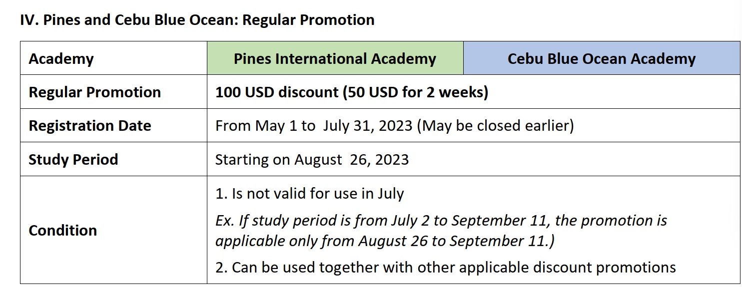 基本上學校所提供的優惠活動,以長年的經驗來看,會提供50美金/4周-150美金/4周為優惠的金額為準,換算台幣大概是1500台幣至4500台幣/月不等的學費折扣優惠。 - 菲律賓遊學的淡季優惠活動依照什麼為準則 :