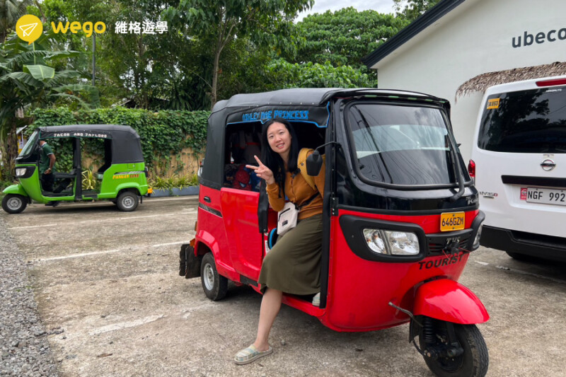 菲律賓的交通工具主要有吉普尼(Jeepney)、計程車(Taxi)、摩托車(Motorcycle)、三輪車(Tricycle)等。吉普尼是菲律賓最常見的公共交通工具,就像是我們的公車,一趟花費也不貴,但是沒有冷氣,如果要去近一點的地方,搭吉普尼真的方便又便宜。計程車有分白色跟黃色,白色的車比較便宜,約28元台幣起跳,如果四個好朋友一起出去的話,這樣分下來可能跟台灣公車費用差不多,又有冷氣吹很舒服。摩托車和三輪車是比較特別的交通工具,可以鑽小路,但是價格要靠喊價,外國人容易被坑。而且女生的話就比較不建議囉,畢竟摩托車司機幾乎都是男生。