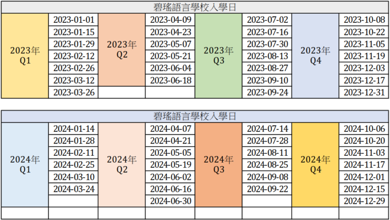 碧瑤地區因為學校聯合接機的關係,每兩周為梯次開課