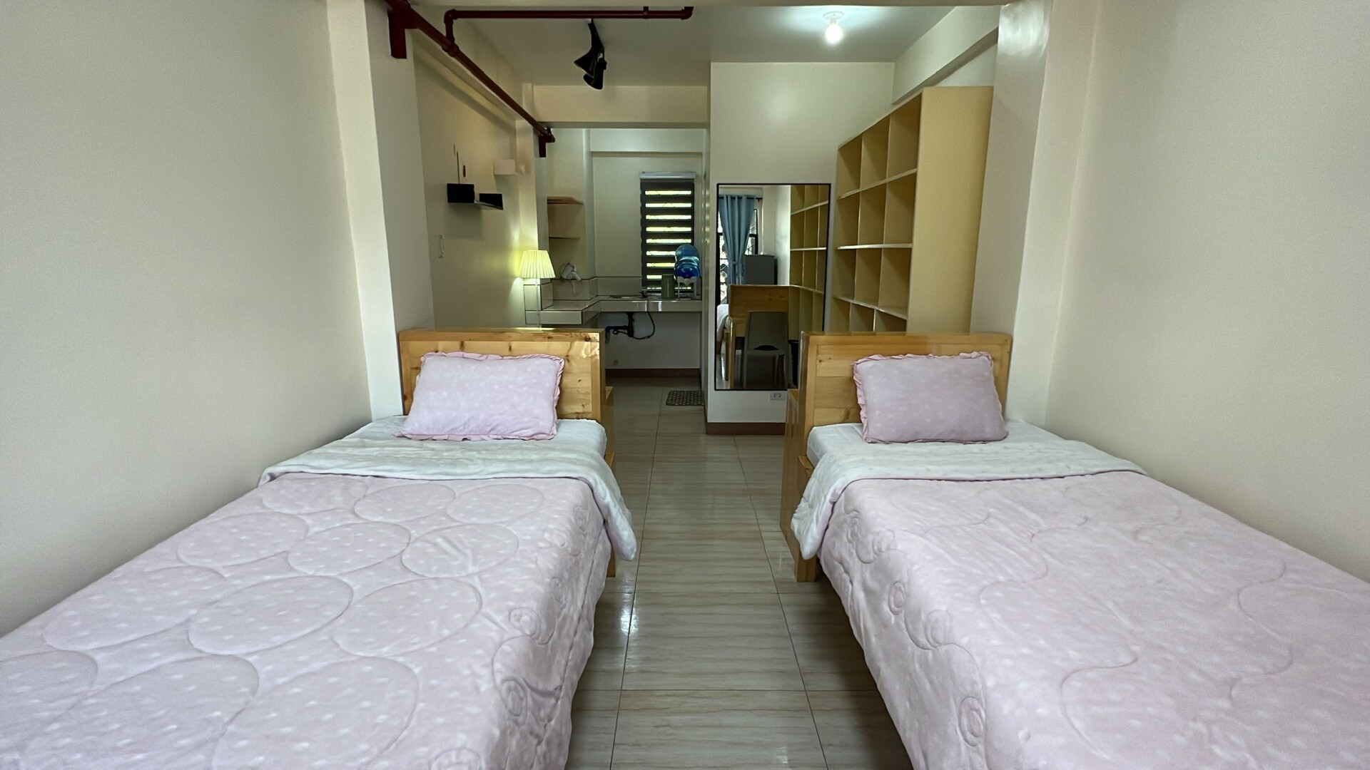 菲律賓語言學校大部分有規定必須要住校內,食衣住行都在學校,校內宿舍基本上的房型是,單人、雙人、三人及四人,少部分學校有六人房型,住宿費的部分以單人房最貴,多人房最便宜,房間數量也是多人房三到四人房最多,單人房間數最少!學校的床位都是一個蘿蔔一個坑,所以一個學生畢業搬走下一個學生就會接續入住,比較夯的學校床位是一位難求,甚至是暑假期間要就讀的,基本上都要提早3-5個月以上先註冊,才有可能有床位喔!所以在菲律賓語言學校就讀,有沒有床位是一大的因素,如果你想要去的日期沒有床位,只能改期或是換有床位的房型了!