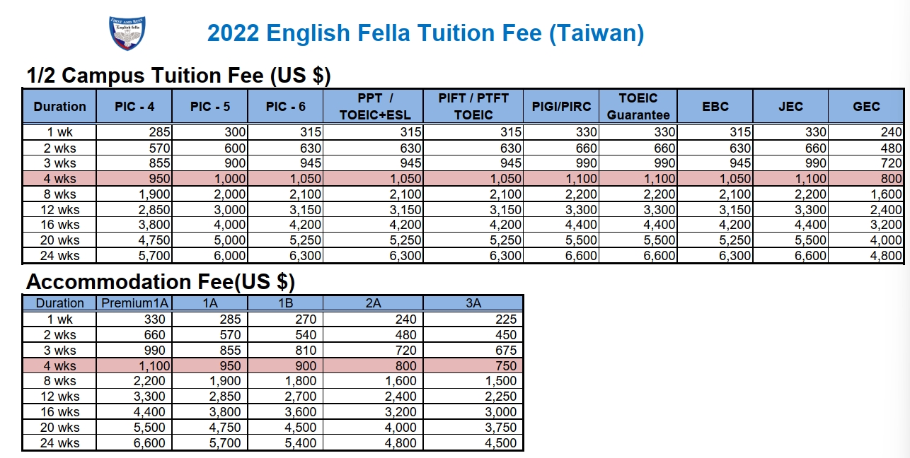 不同的課程訂價上面會有所不同,課程架構同樣是整天一對一四堂+團體課四堂的堂數,ESL課程是最便宜的,考試課程與商業英文課程這些高階課程內容會相對貴一點。