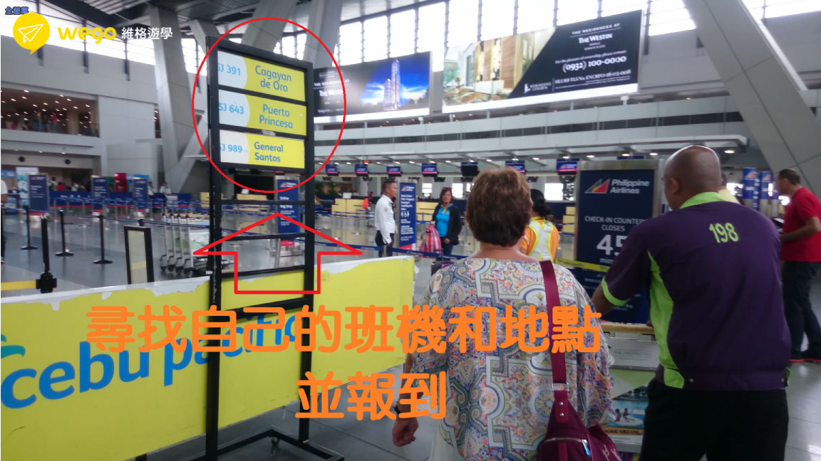 找到自己的航空公司,確認班機地點報到(亞航、宿務航空其他等等)