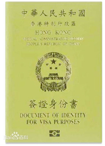 香港簽證身分書護照HKDI (指從大陸移民香港少於7年的居民,只能領此護照出國) |