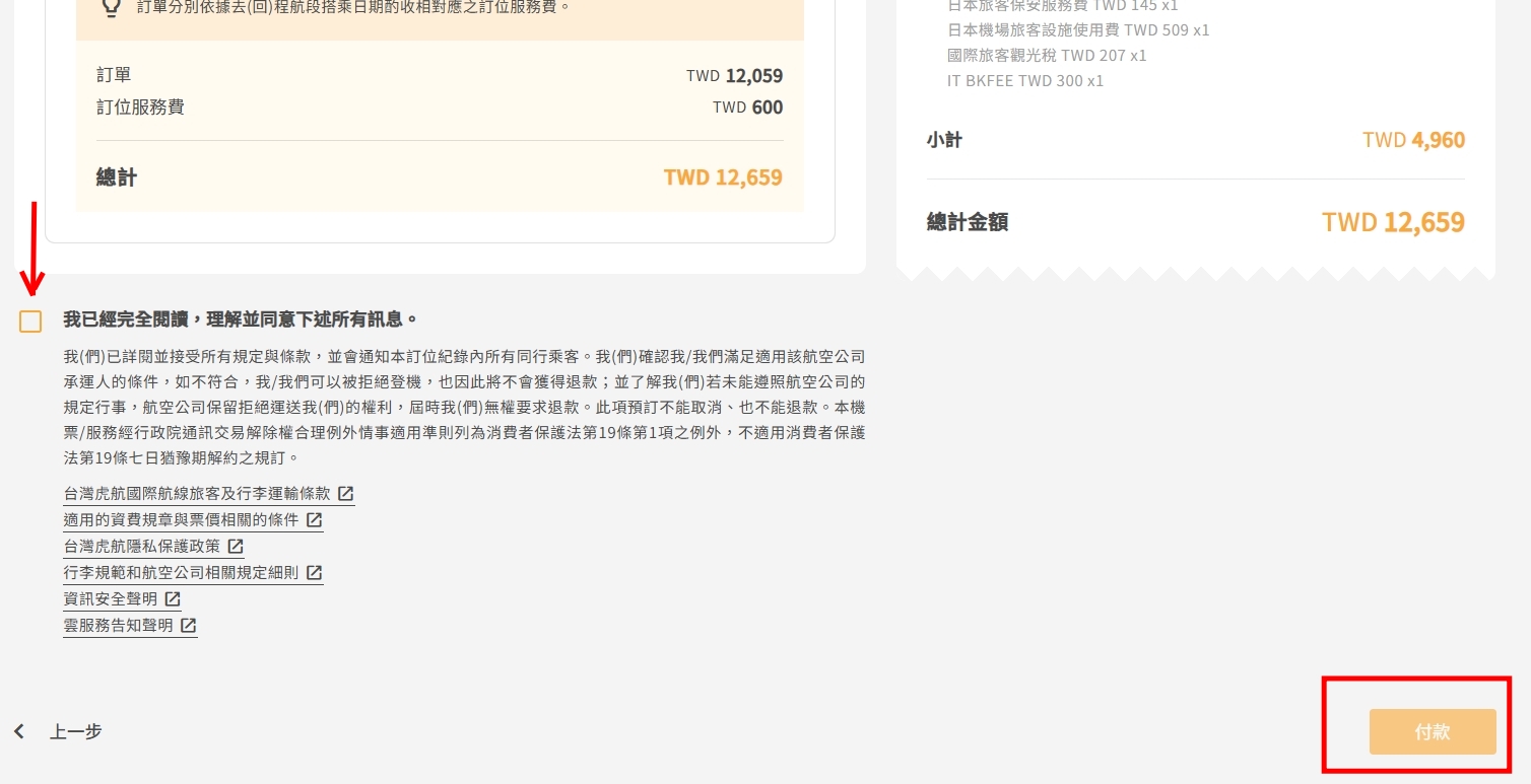 以上台灣虎航訂票圖文教學5分鐘五個步驟是不是很簡單快速,學會這技能絕對有大大幫助,省下來的機票錢都可以吃好幾頓海鮮大餐,或是二個人的來回機票錢,但也不能忽略廉價航空的缺點,很多東西沒有包含進去,所以要一項一項的確認,有時候全部購買完畢還會比華航、長榮還貴,那如果有臨時航班異動、取消,會比較麻煩一點,所以都有取捨的優缺點大家可以參考看看。