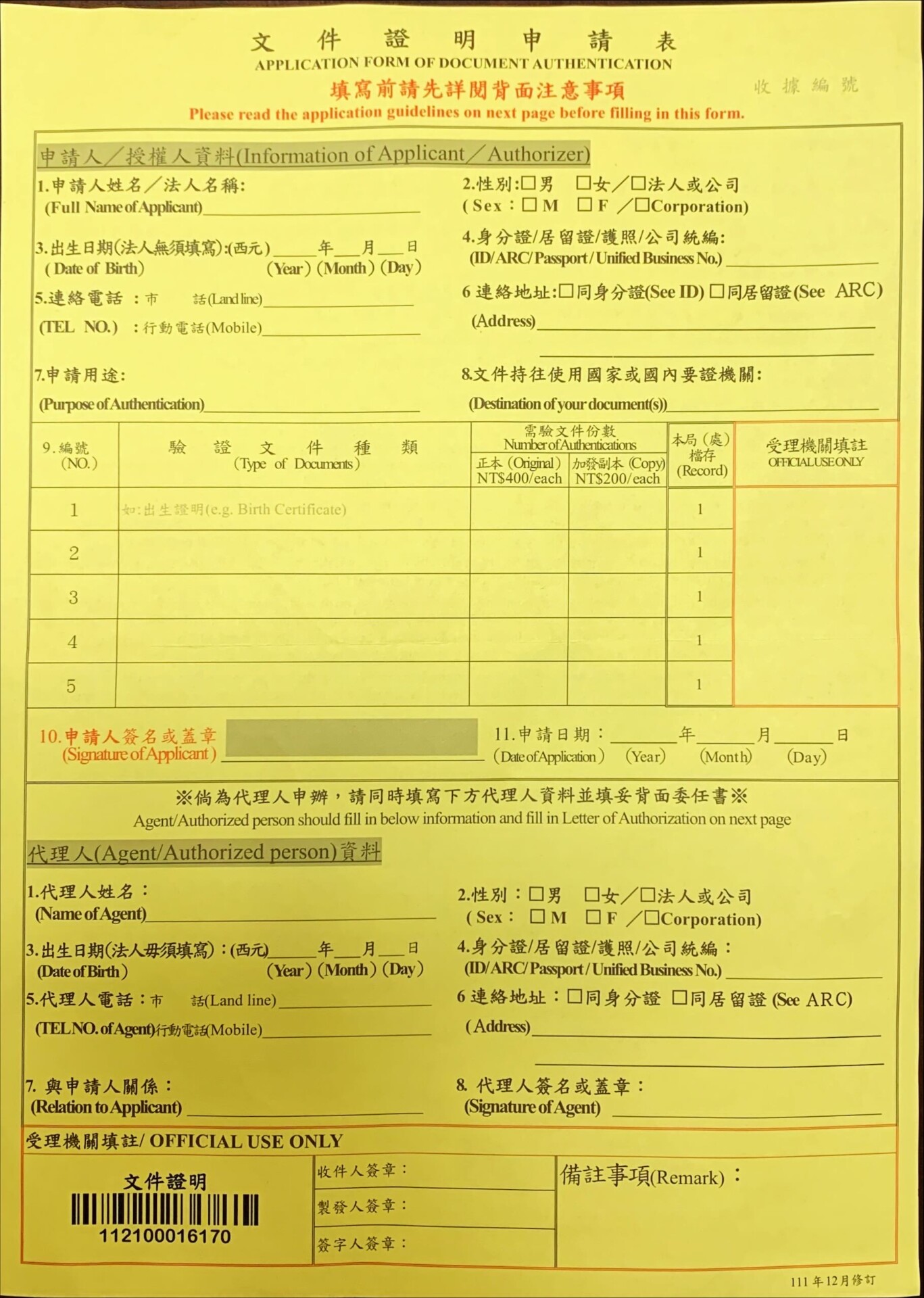 填寫 5 份宣誓書,至民間公證單位進行第一次公證。