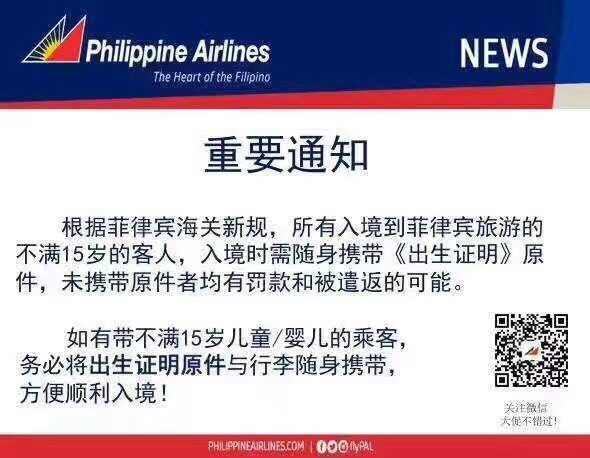 未滿 15 歲孩童入境菲律賓,必須攜帶「出生證明」,以免在海關遭遇阻攔。
