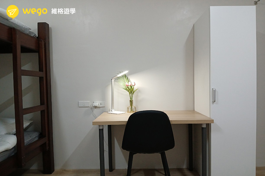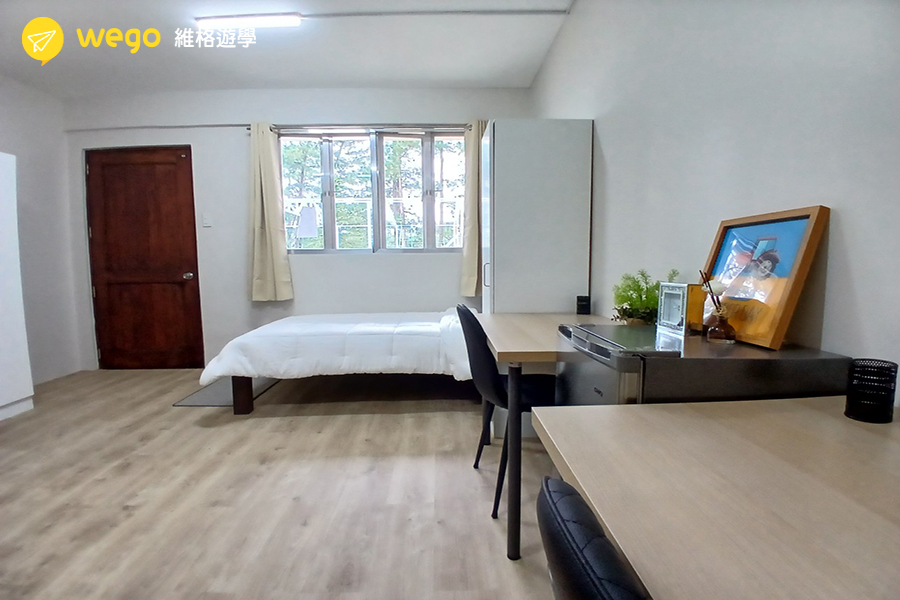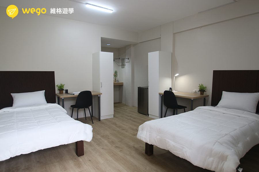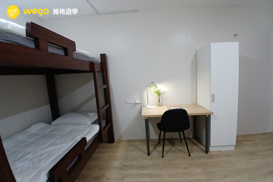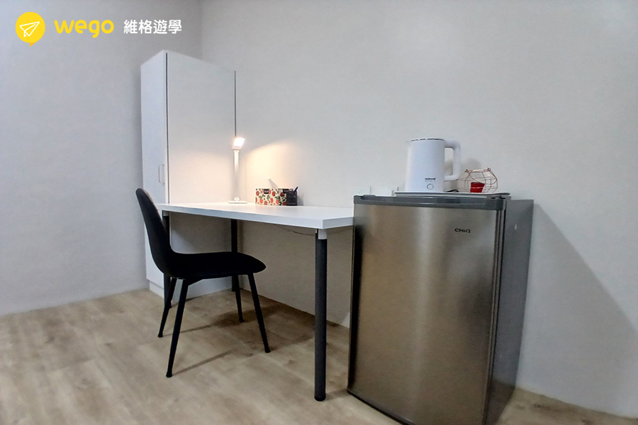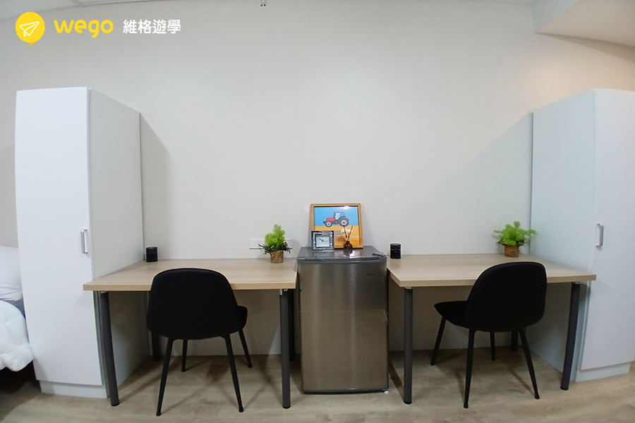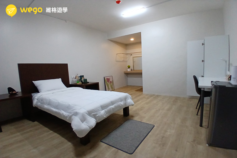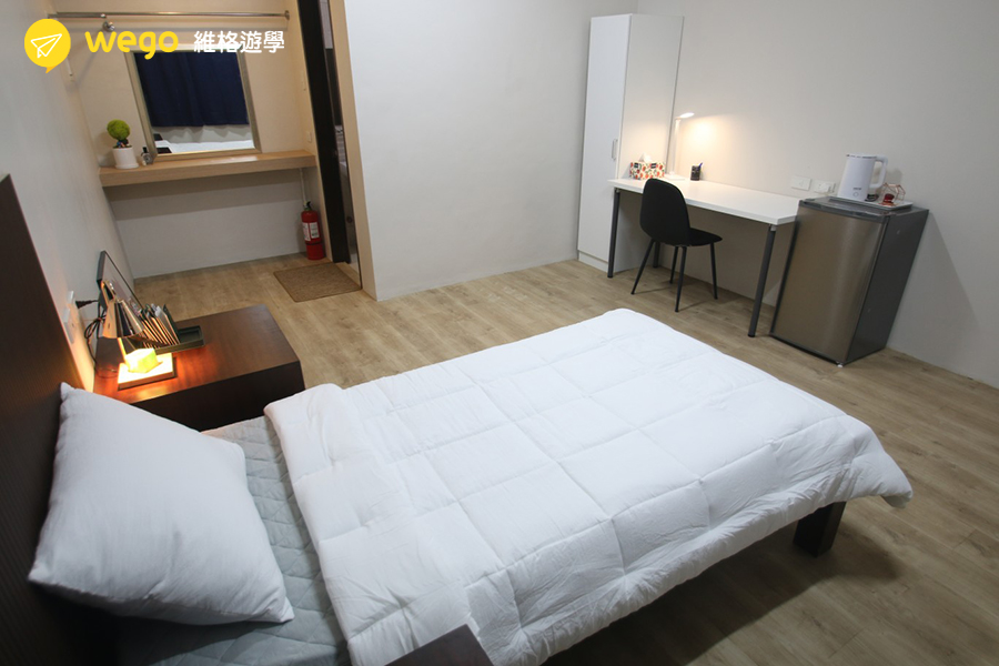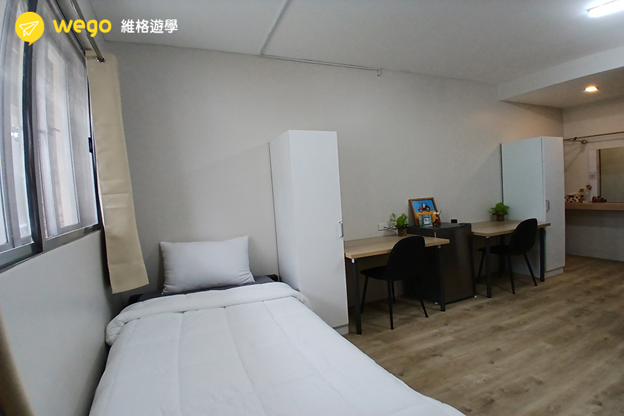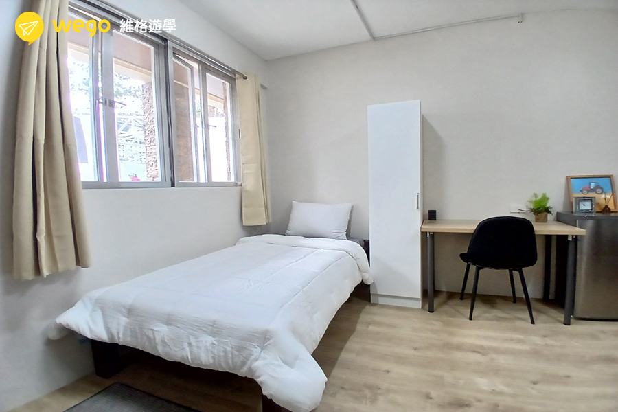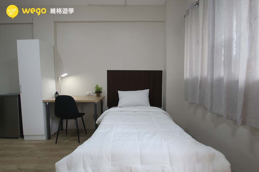 - 宿舍附冰箱、衣櫃、床、桌椅。