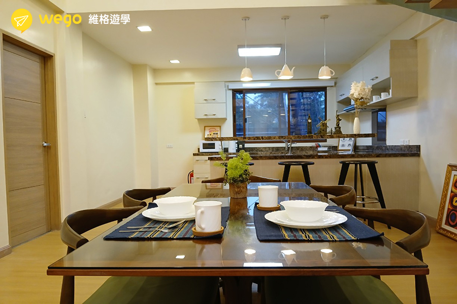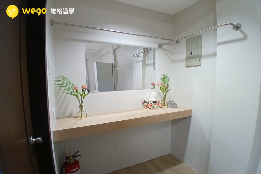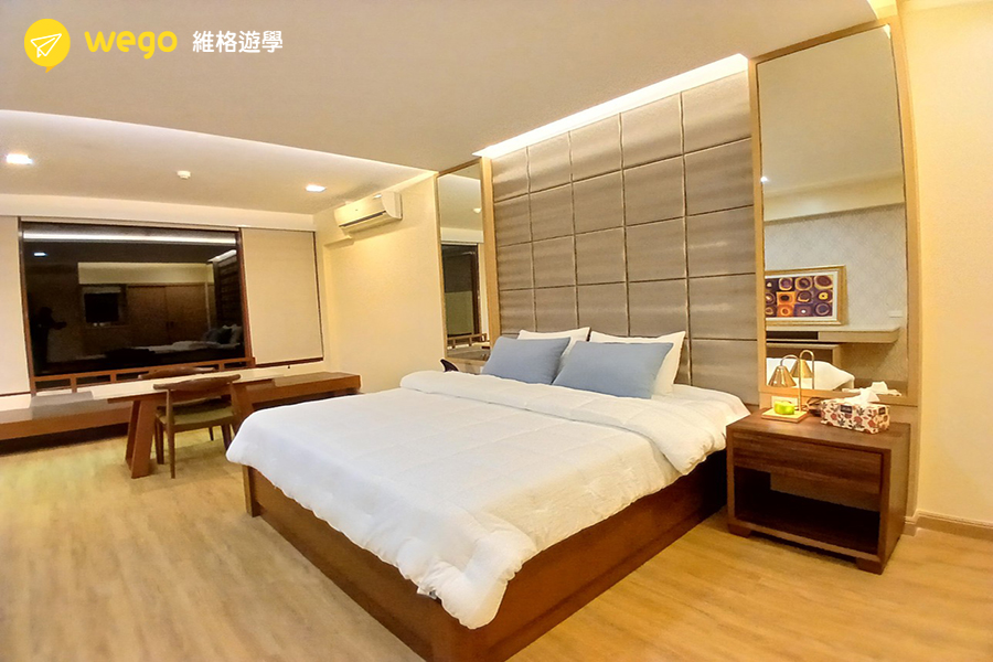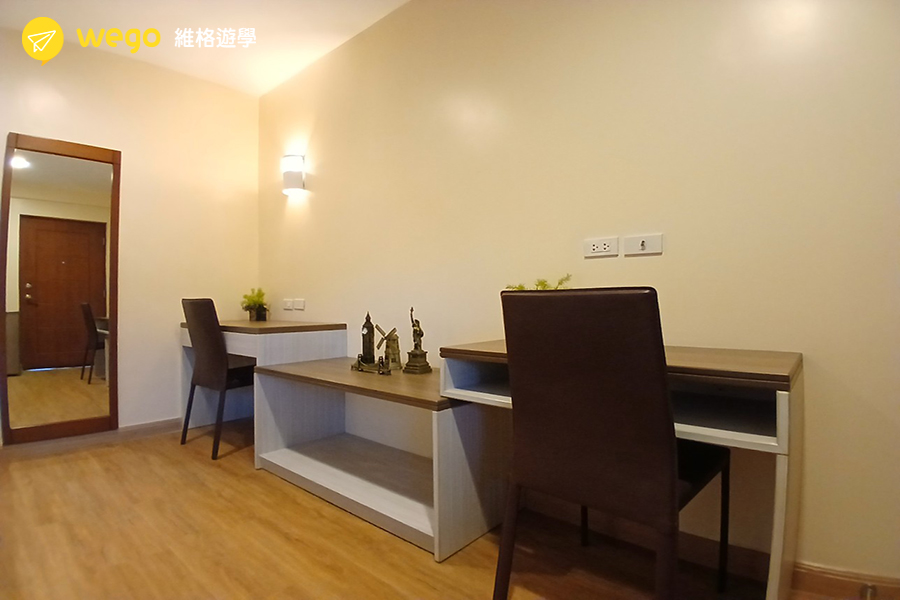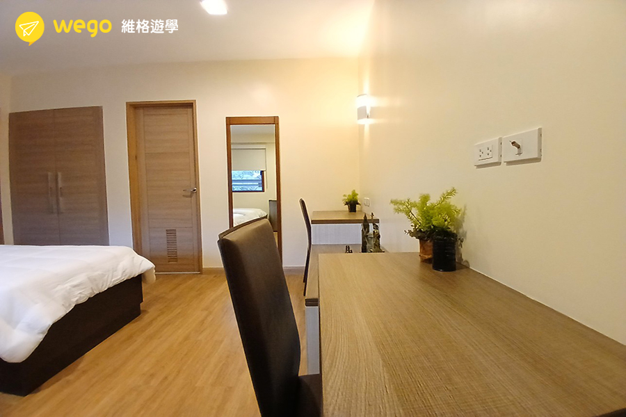 A&J 提供從單人房到四人房、Eco Villa 與 Premium 家庭房等多種房型,滿足個人或家庭學生的不同住宿需求。房間設備齊全,部分高級房型設有浴缸、衣帽間與公共空間,提供更優質的生活品質。校區周邊生活機能完善,不論是單獨學習或家庭陪讀,都能享有舒適又便利的學習環境。