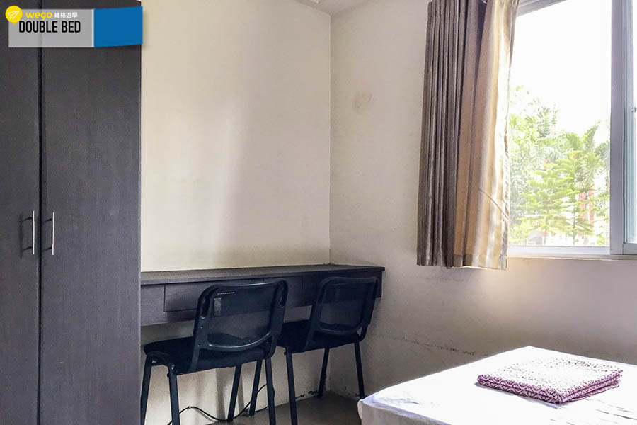 - 宿舍:Wifi、衣櫃、書桌、椅子 床 冷氣 每層樓都有共用冰箱。