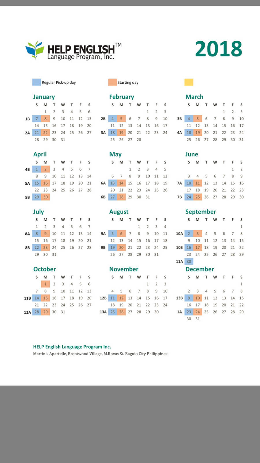 我們用Van從機場直接接學生到碧瑤校區 - A的話是正常的課程開始,B是插班生。