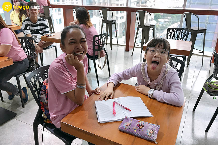 首先,學校經理非常親切地向我們介紹了學院周邊的生活與設施,因此我們的生活過得非常舒適。每週經理還會安排我們參加旅行活動,例如嘉華山溯溪(Kawasan canyoneering)、奧斯陸賞鯨(Oslob)以及跳島行程(hopping tour)等,讓學習生活更加豐富有趣。在課程方面,菲律賓當地的老師教學非常細心,尤其針對我兒子的程度進行個別化指導。讓我印象深刻的是,老師們在課堂之外的休息時間,也會主動用英語與我兒子交流。我相信,這正是孩子能夠專注課堂、快速進步的關鍵原因。